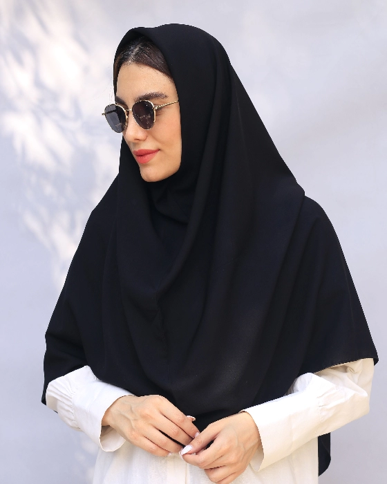 نمایش کمترحجاب شیک و راحت برای بانوان ایرانی با مقنعه مشکی کرپ قواره 90