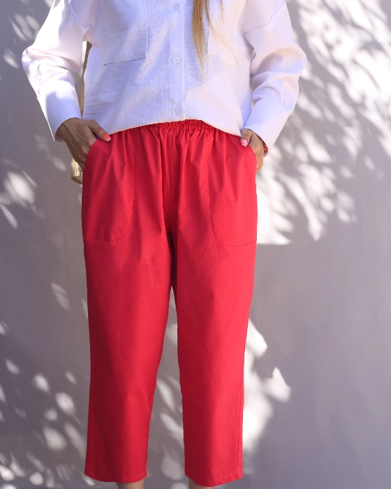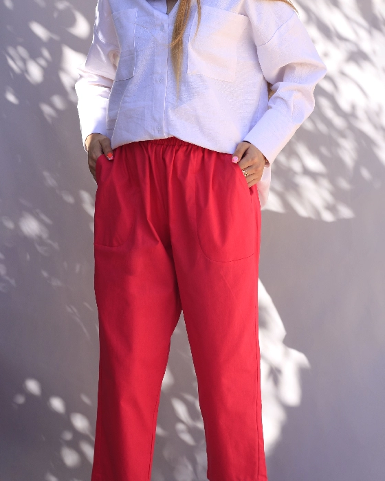 شلوار زنانه سرخابی، رنگی جسورانه و جذاب که می‌تواند استایلی منحصر به فرد و خاص را برای شما به ارمغان بیاورد. این شلوار با رنگ خاص و چشم‌نواز خود، برای خانم‌هایی که به دنبال استایلی متفاوت و جسورانه هستند، انتخابی ایده‌آل است. این شلوار از جنس لینن به صورت مام استایل با کمر کش و بدون آبرفت میباشد .