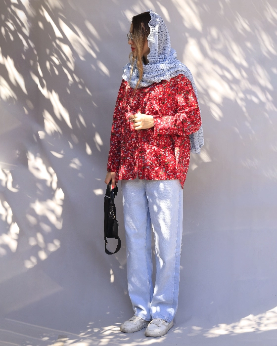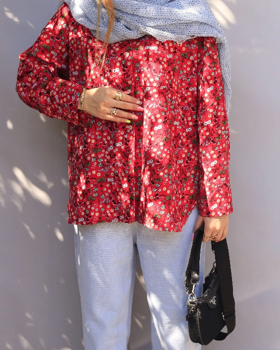 شومیز گلدار قرمز طرح دکمه