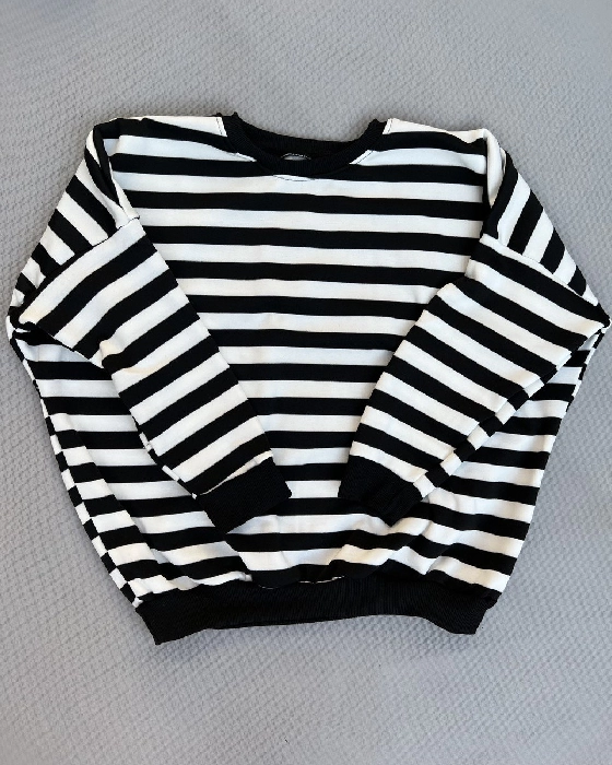 طرح راهراه مشکی و سفید این لباس، یک انتخاب مناسب برای افراد در تمامی سنین به شمار میرود. از جوانان تا میانسالان، همه میتوانند از این طرح بهرهمند شوند و به جذابیت ظاهری خود بیفزایند.