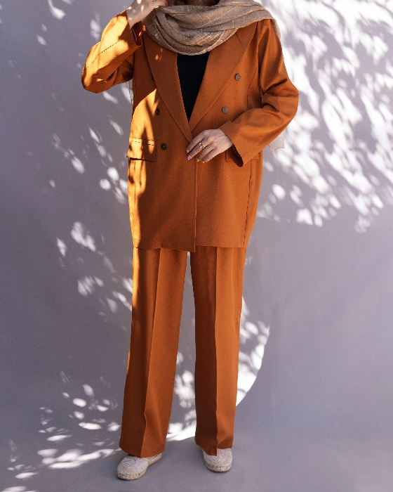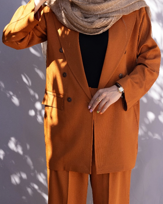 - طراحی شیک و مدرن: این کت و شلوار با ظرافت تمام طراحی شده و برش های آن به گونه ای است که به اندام شما به طور کامل مینشیند و فرم بدن شما را به زیبایی نشان میدهد.
